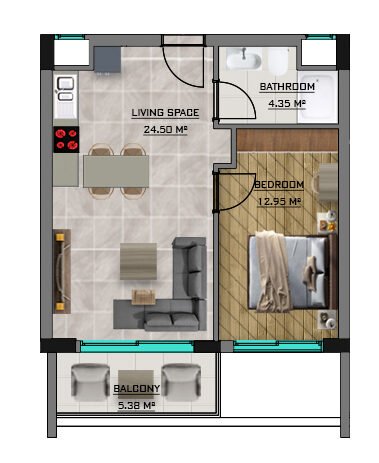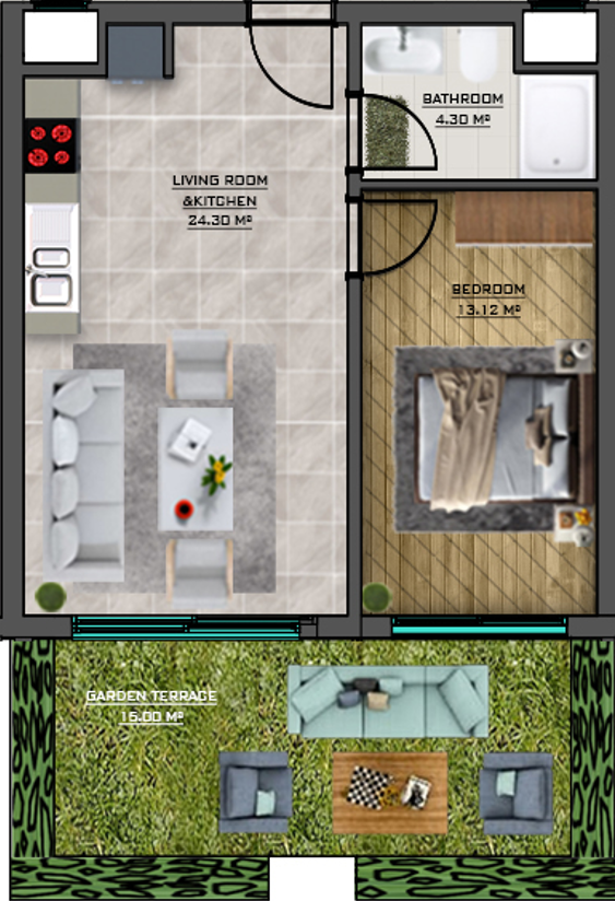 Апартаменты 1+1. Цокольный этаж. Свой сад. Просторная планировка.
