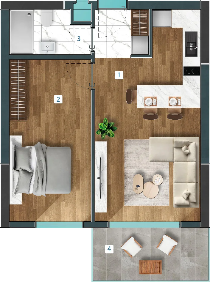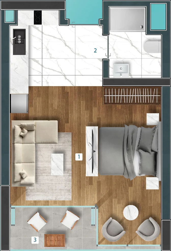 Kaya Residences – ваш уголок рая на Земле, где каждый день наполнен красотой природы и комфортом современного жилья. Комплекс включает в себя шесть отдельных зданий, предлагающих различные типы апартаментов — от уютных студий до просторных двухкомнатных квартир, площадью от 35 до 109 Кв.м.