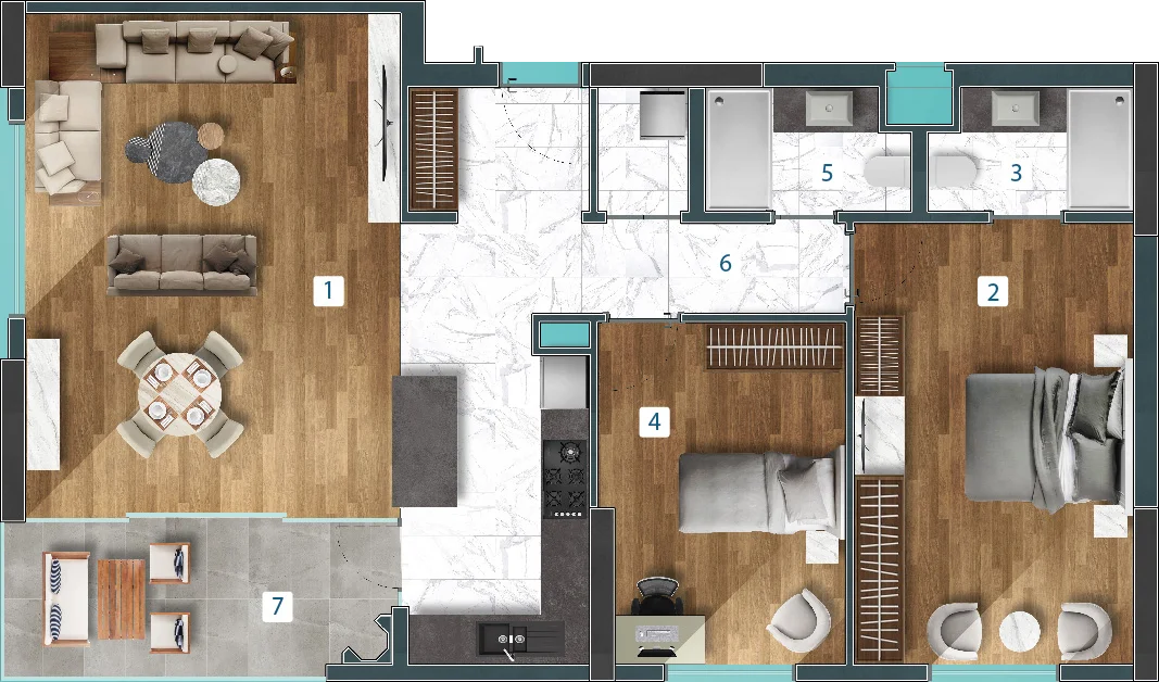 — Качественная отделка, сантехника, встроенная мебель и оборудованные санузлы